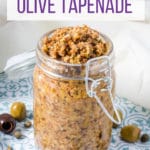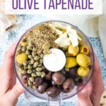 If you’re looking for a black and green olive tapenade recipe without anchovies, this one doesn’t include any. So if you don’t like or can’t find those salty little fish, no worries here! Everything in this recipe is easily kept in your pantry or fridge for making this tapenade on a whim.