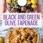 This simple black and green olive tapenade recipe is an easy, savory spread you can make in about five minutes! Serve with crostini or use as a sandwich topping!