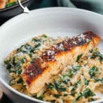 So delicious! Even my husband loved it (and he is not the biggest salmon fan.) I didn’t have orzo but I used fregola sarda pasta (similar to pearl couscous which would also work.) The sauce was so creamy with just the right amount of cheesiness. The seasoning in the sauce is key. Will definitely make again.