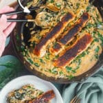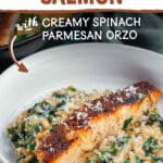 This easy one skillet orzo and salmon recipe combines whole blackened salmon fillets with a delicious creamy spinach parmesan orzo — with only one pan to wash! Family-friendly, classy enough for a date night, AND on the table in 30 minutes!