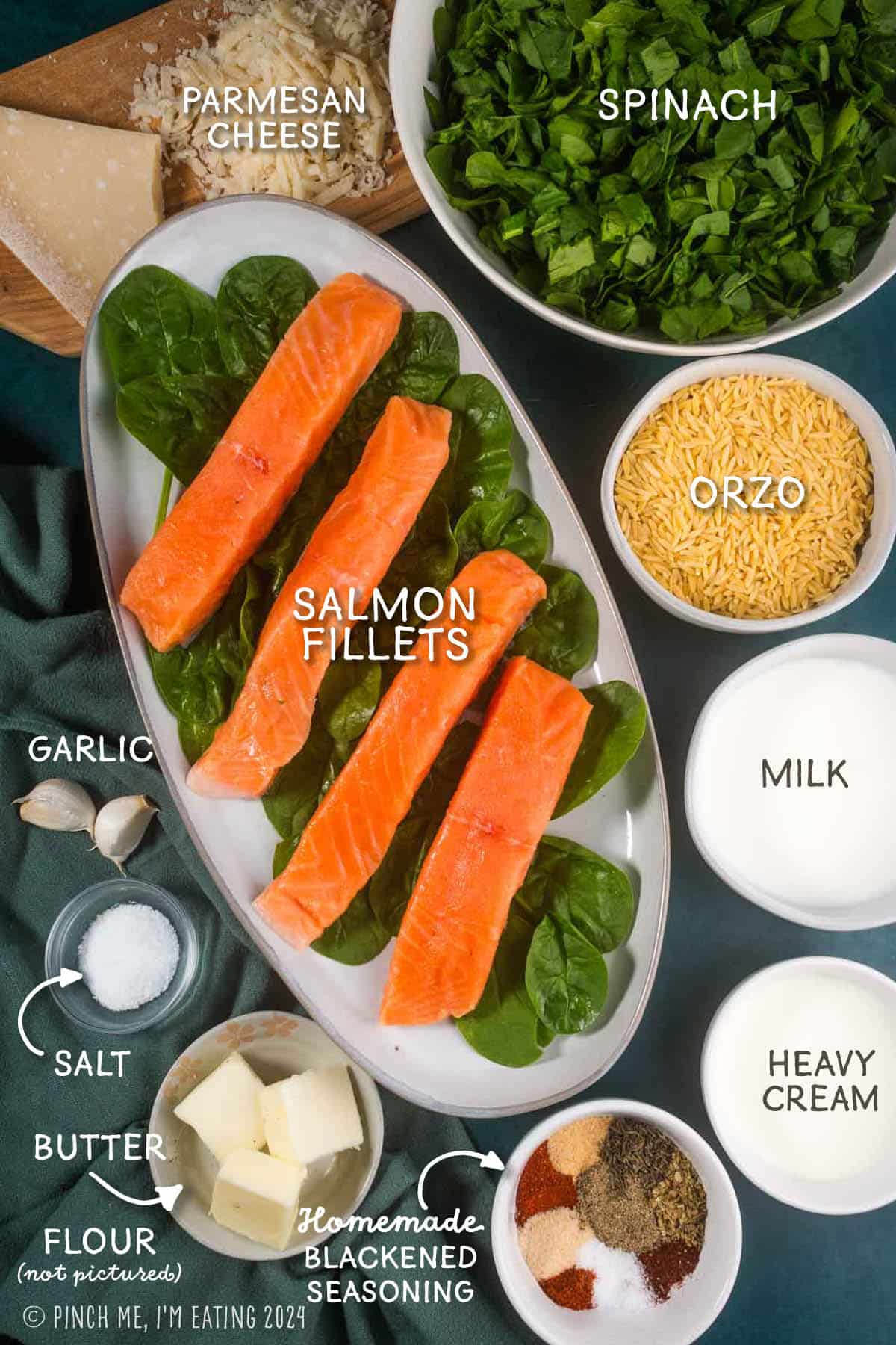 - Use up your leftovers: This is a great recipe to use up leftover salmon, if they have a neutral or flexible seasoning like salt and pepper, lemon, or blackened seasoning. If you have 4 oz. leftover salmon, make the orzo as-is and flake the salmon into it (will serve 2 as a pasta dish). If you have 8 oz. salmon or more, double the orzo and sauce!