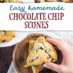 Making homemade chocolate chip scones is extremely quick (30 minutes) and easier than you’d think! There are just five basic steps.