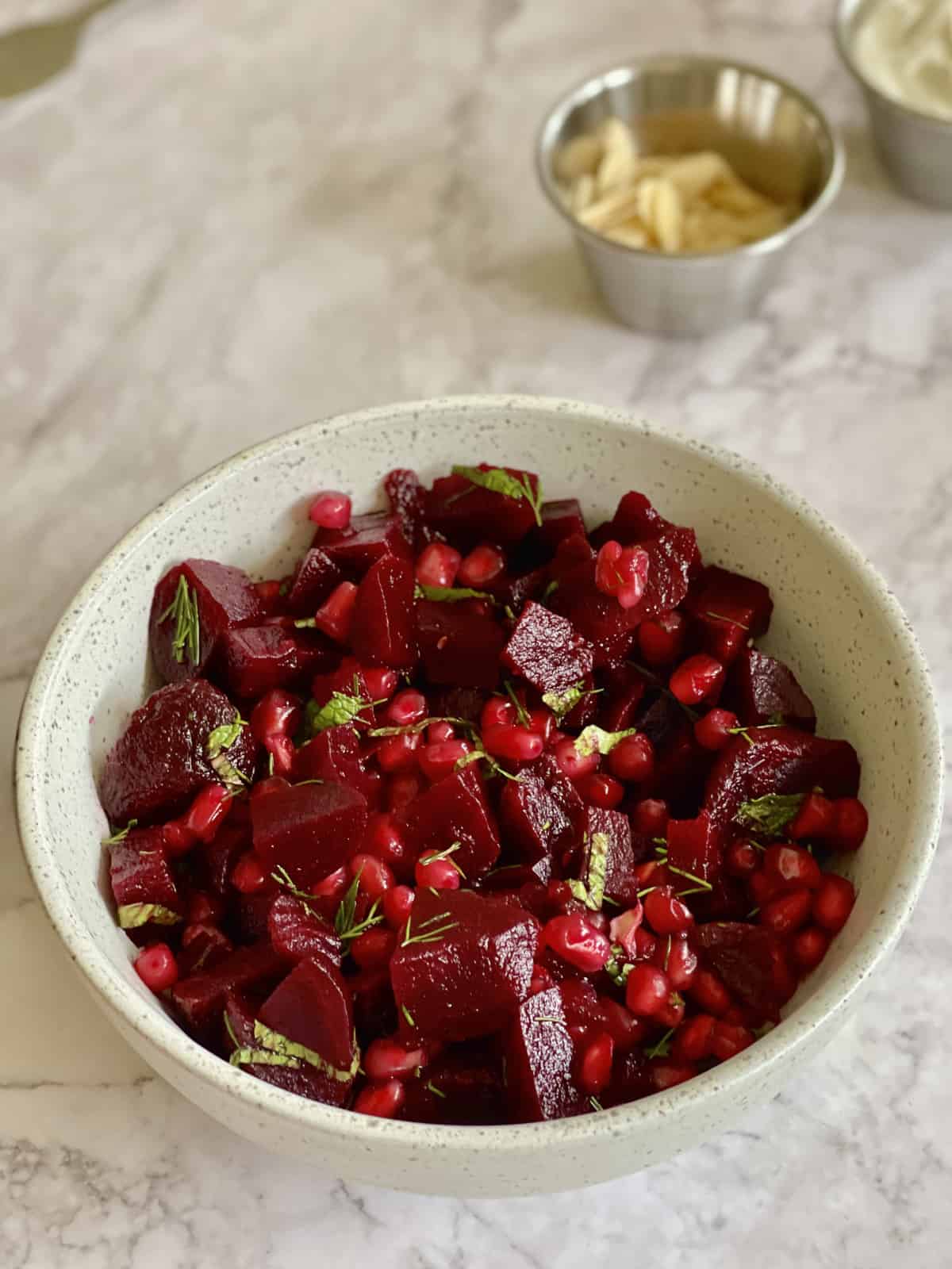 This beetroot salad with pomegranate is easy, quick and tasty – and my favorite way to enjoy beets! Perfectly seasoned with fresh herbs, you will definitely want to try this vibrant, simple and healthy salad.