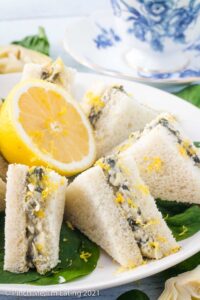 Spinach artichoke tea sandwiches are light, delicate appetizers perfect for a springtime gathering! The spread uses freshly steamed spinach and a squeeze of lemon for a bright, fresh flavor, and is rounded out with a good helping of parmesan cheese. Garnish with a bit of lemon zest for a pop of color!