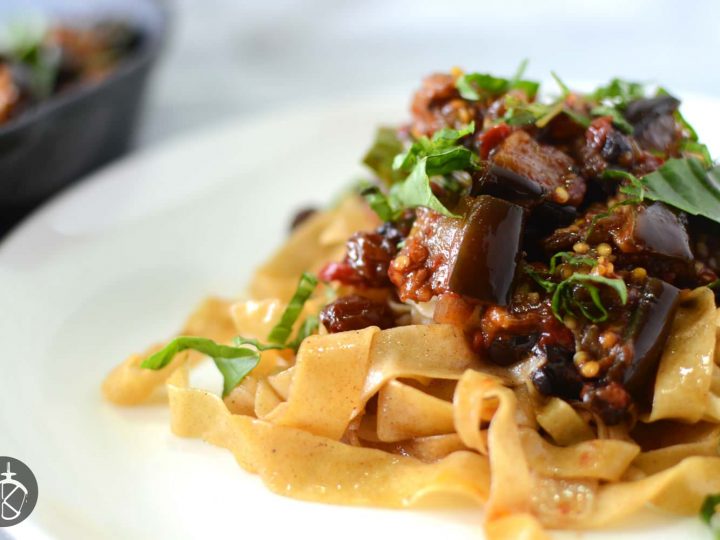 Roasted Eggplant Caponata with Brown Butter Pasta
