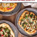 While I like to parcook pizza crusts from storebought fresh pizza dough, you can also use alternate crusts for an easier DIY pizza bar! Here are some other options.