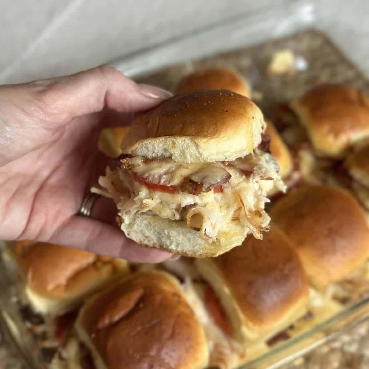 While a big messy open-faced sandwich may not be in the cards for a Derby Day party, these handheld Kentucky Hot Brown Sliders are the perfect solution! In these cuties, layers of turkey and bacon are smothered in a cheesy Mornay sauce on a soft slider bun.