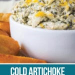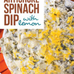 I was brainstorming spring recipes and came across artichokes as an example of spring produce. I thought a chilled or room temperature artichoke spinach dip with a bright burst of lemon would be the perfect way to add a warm-weather twist to a dip that’s usually served hot.
