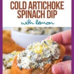 This cold artichoke spinach dip is a lighter variation on the standard dip! Fresh and preserved lemon adds a bright flavor that makes this dip perfect for spring and summer. Serve with crackers, crostini, or fresh veggies!