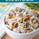This shredded chicken salad is so good it’s really a complete sandwich filling! No other ingredients needed except maybe a layer of crunchy lettuce.