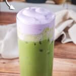 This spring I went to Starbucks hoping to try something a little different than my go-to drinks. The poster of the new seasonal matcha latte with lavender cold foam stopped me in my tracks — a gorgeous layered beverage with purple and vibrant green and all the flavors I loved. You can see my love of tea and lavender in my Earl Grey scones with lavender glaze, and lavender Earl Grey frappuccino.