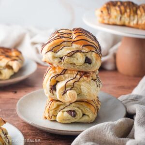 You don’t have to be a pastry chef to enjoy homemade chocolate croissants in your own kitchen! With these easy and delicious 3-ingredient puff pastry chocolate croissants fresh out of the oven in only 30 minutes, you won’t miss the coffee shop at all!