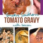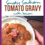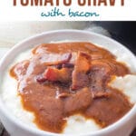 Southern tomato gravy is just what you need to top off a hot bowl of grits or fresh, steaming biscuits! With a smoky flavor and plenty of bacon, this gravy is a must-have for your next Sunday brunch!