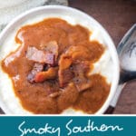 - Serve spooned over grits or biscuits with the bacon sprinkled on top.